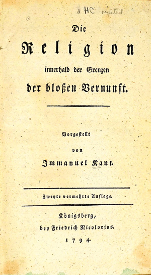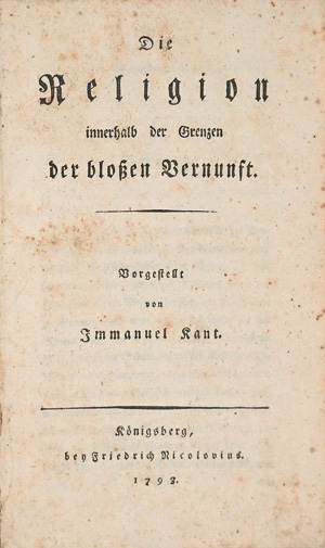 Die Religion innerhalb der Grenzen der bloßen Vernunft. Königsberg, F. Nicolovius, 1794
