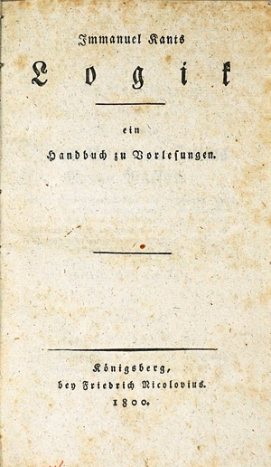 Logik ein Handbuch zu Vorlesungen. Königsberg, F. Nicolovius, 1800