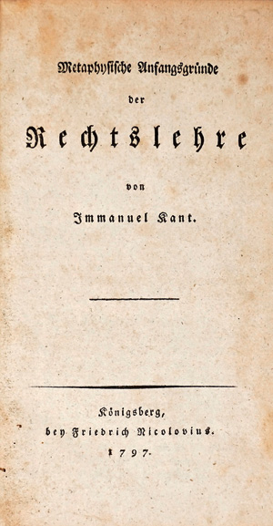 Metaphysische Anfangsgründe der Rechtslehre. Königsberg, F. Nicolovius, 1797