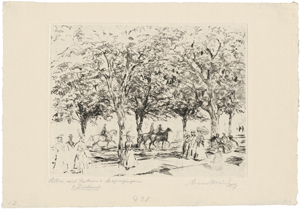 Vorhanden sind die Motive "Reiter auf der Waldbrücke", "Venus und Mars" und "Am Radiertisch", jeweils Drucke von der vollendeten Platte. Sämtlich prachtvolle Drucke mit breitem Rand, teils mit dem Schöpfrand.