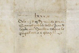 LXXXX dels XI sous III diners venuts per en Samuel andali sastre Jueu de Leyda a