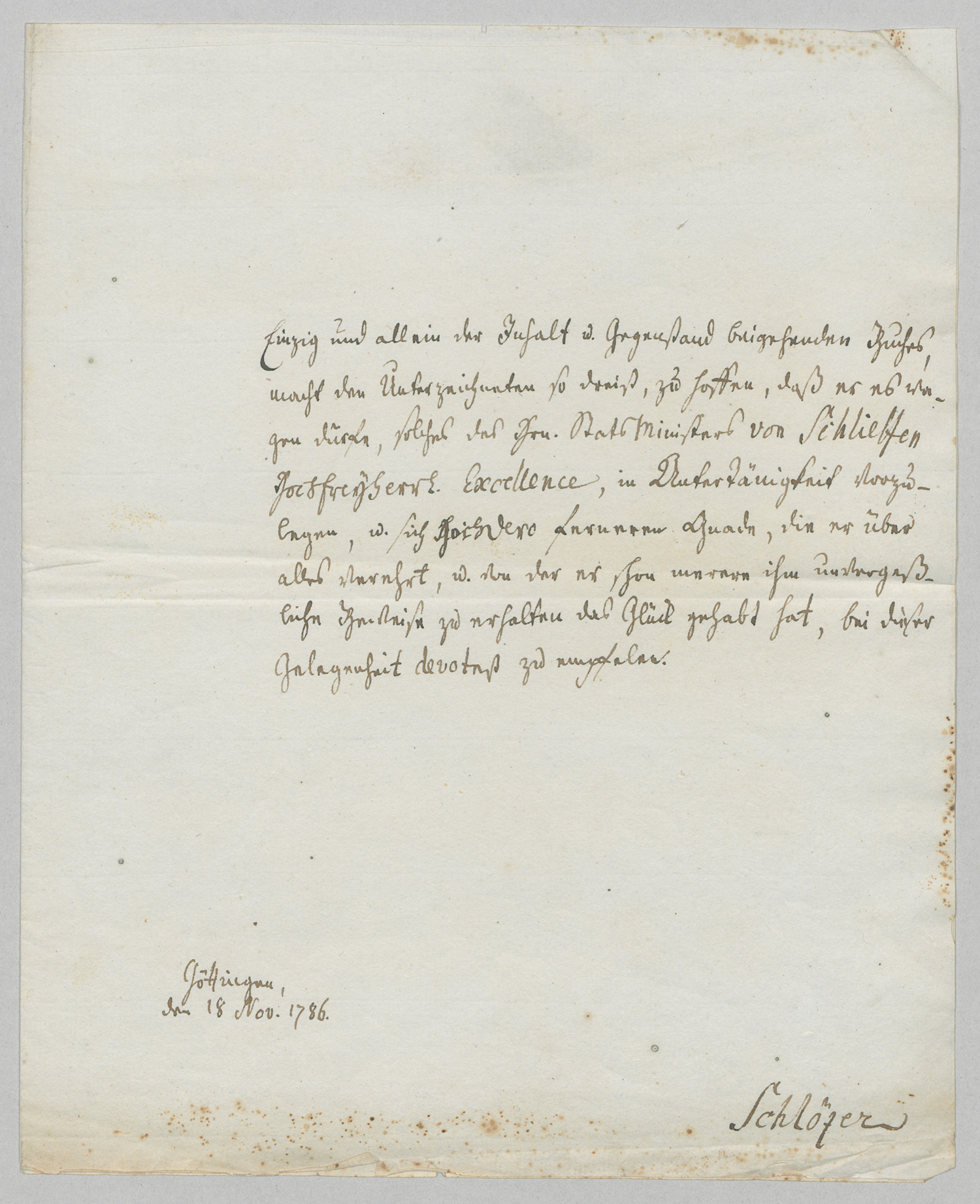 (1735-1809)Brief aus Göttingen an den Minister von Schlieffen. 1786