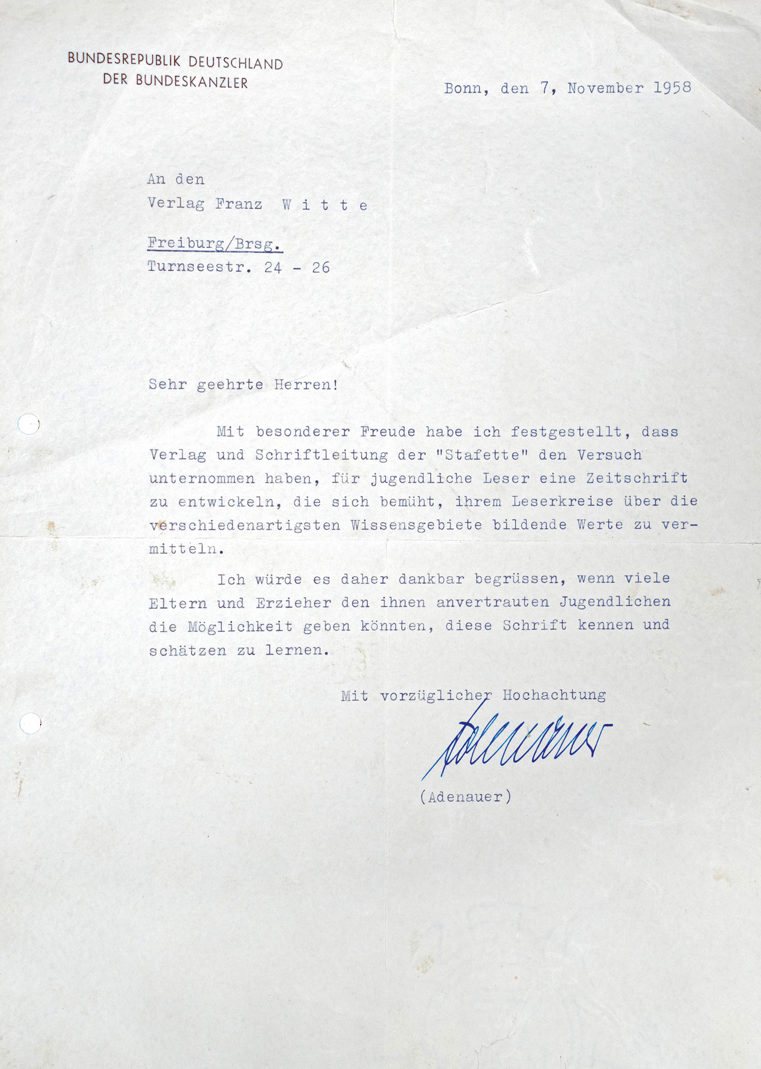 Lot 2572, Auction  126, Adenauer, Konrad, Brief an einen Verleger. 1958