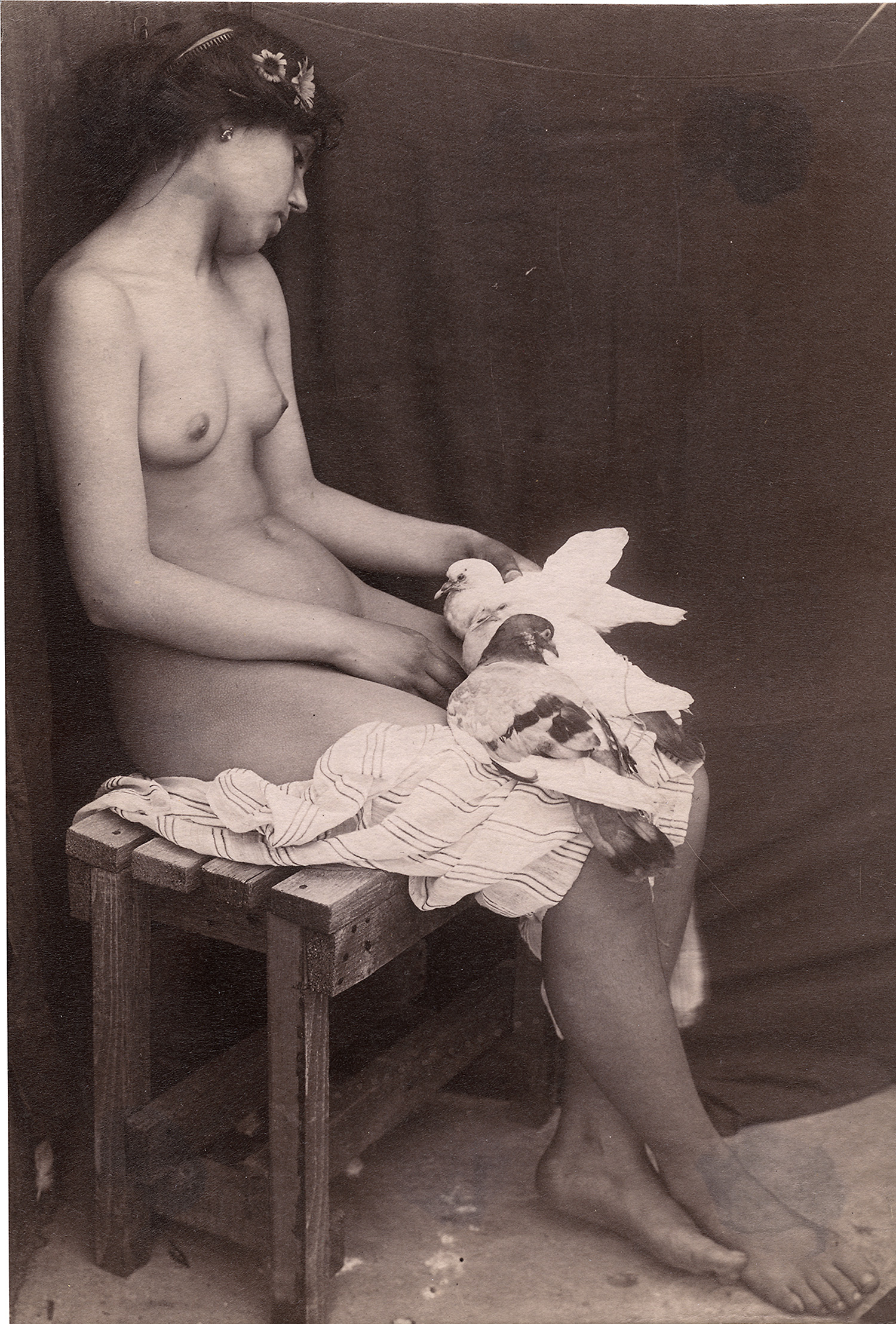 (1871-1961)Seated nude with doves