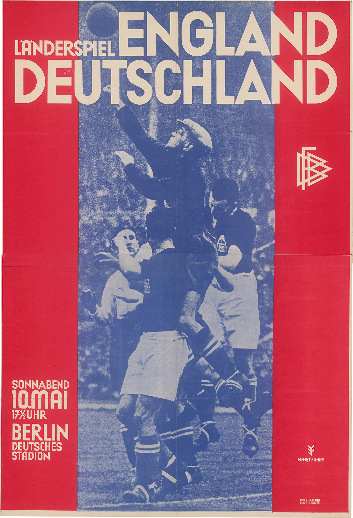DFB-Plakat zum ersten Fußball-Länderspiel zwischen England und Deutschland. Berlin, Holzhauser, 1930