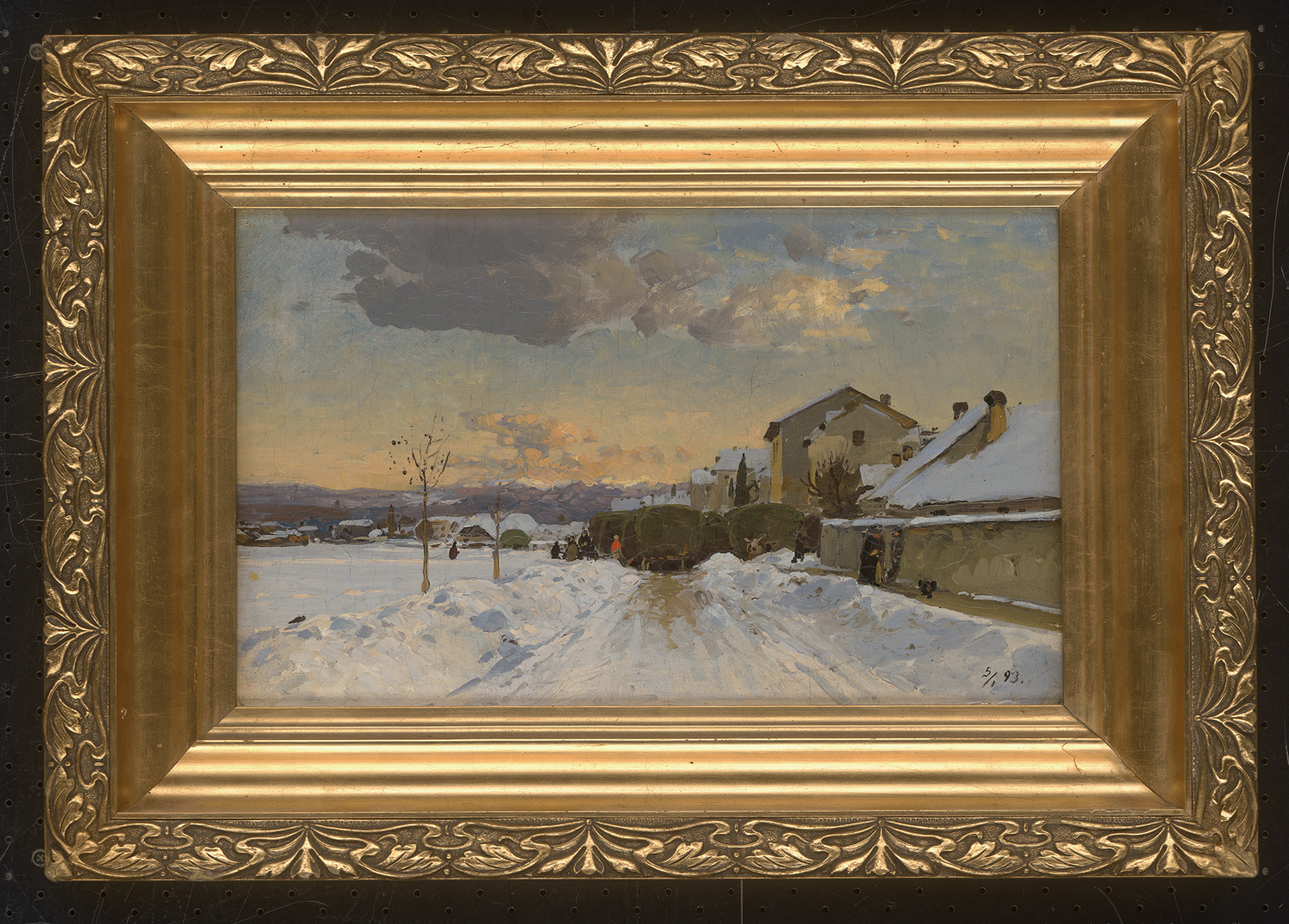 (1848-1902, Markneukirchen i. Vogtland)Wintertag in Görz (Gorizia) mit Blick auf die Julischen Alpen