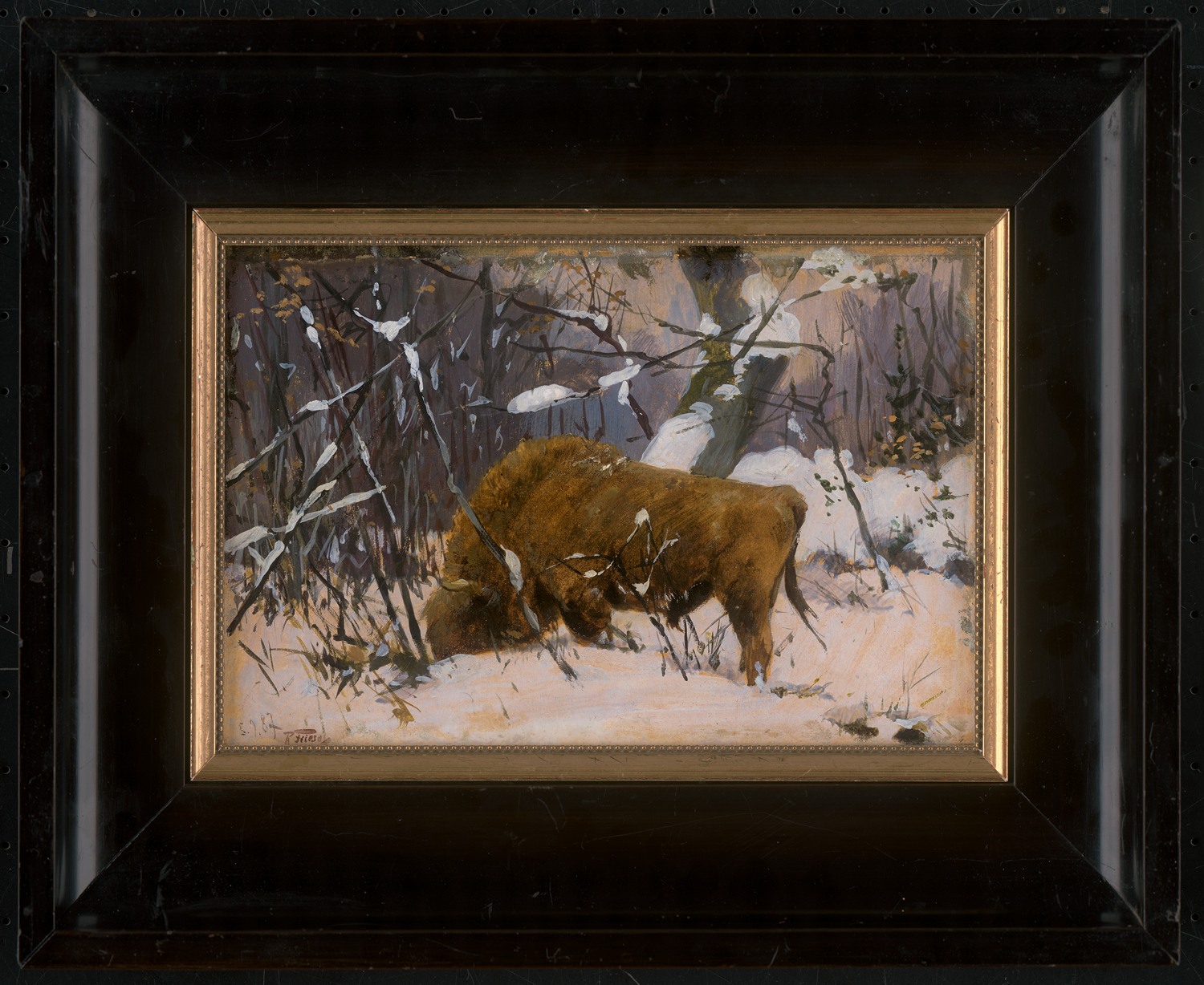 Lot 6205, Auction  126, Friese, Richard, Wisent im winterlichen Wald der Rominter Heide
