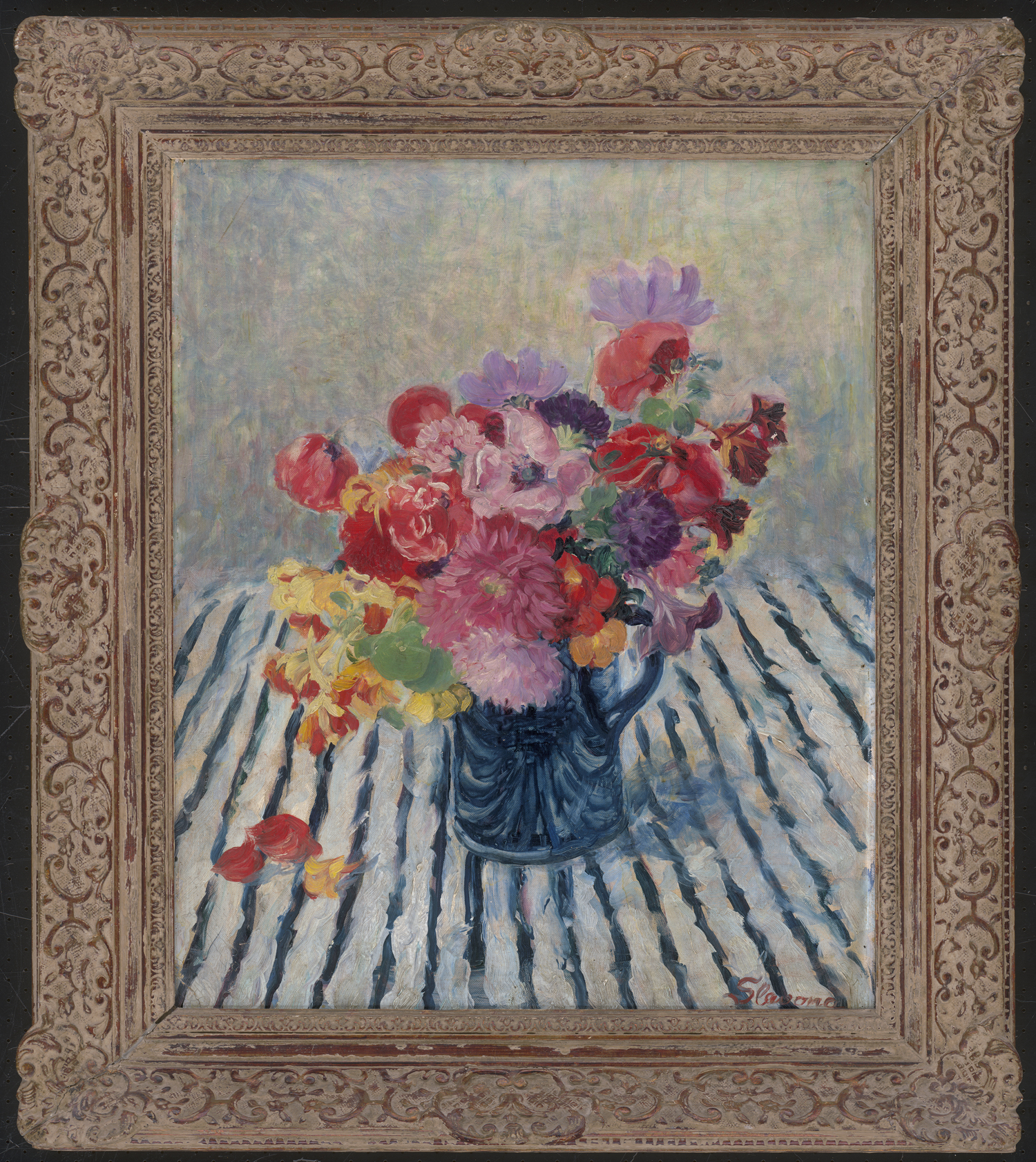 Los 6215 - Slavona, Maria - Blumenstilleben auf einem Tisch mit gestreiftem Tischtuch - 0 - thumbLos 6215 - Slavona, Maria - Blumenstilleben auf einem Tisch mit gestreiftem Tischtuch - 1 - thumbLos 6215 - Slavona, Maria - Blumenstilleben auf einem Tisch mit gestreiftem Tischtuch - 2 - thumb