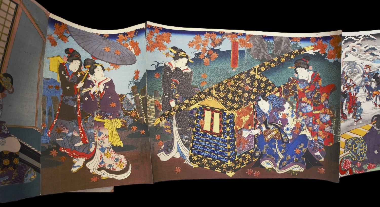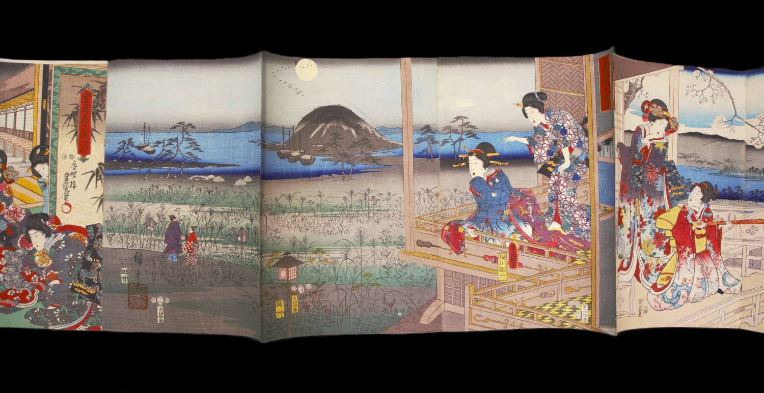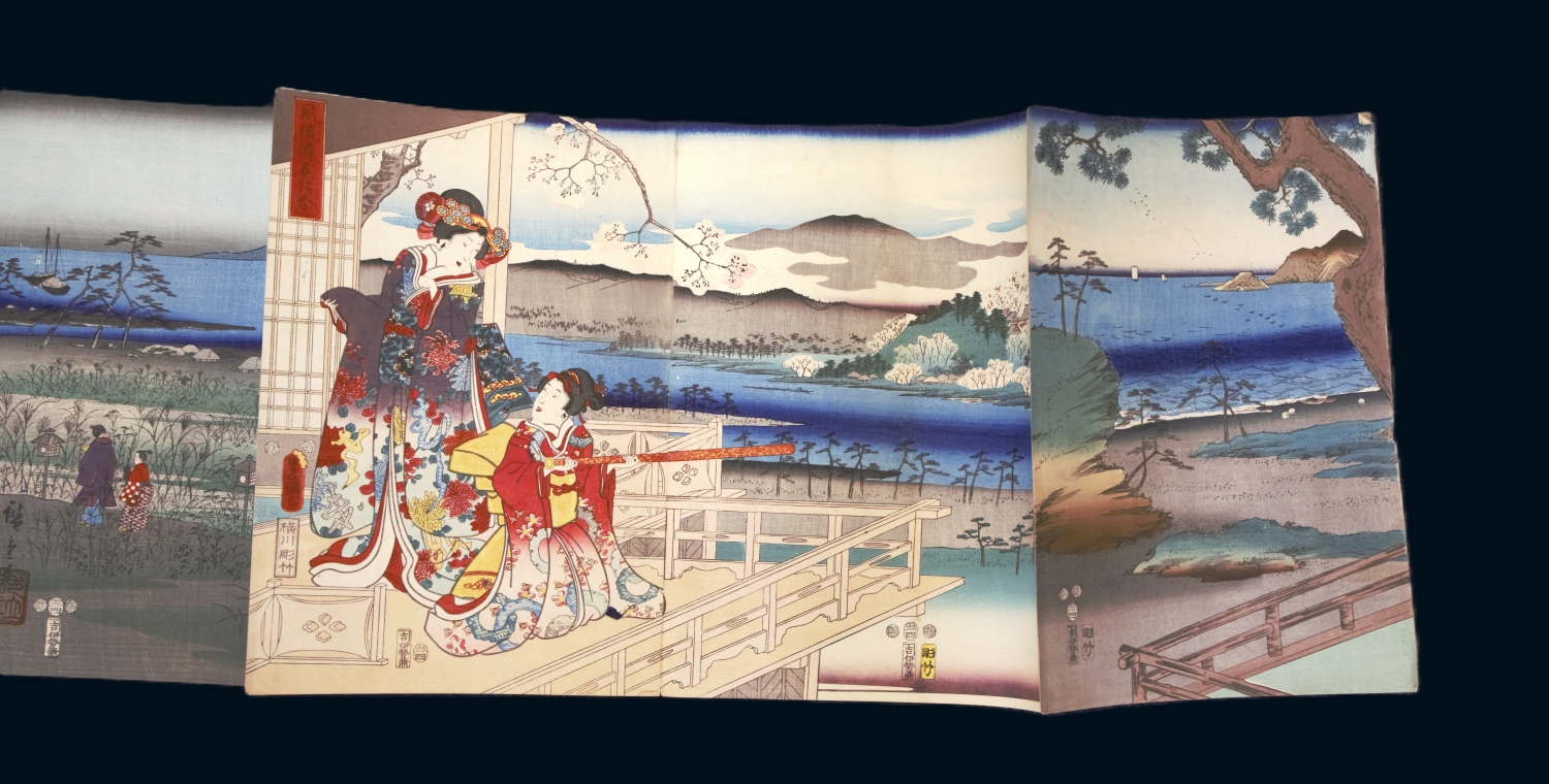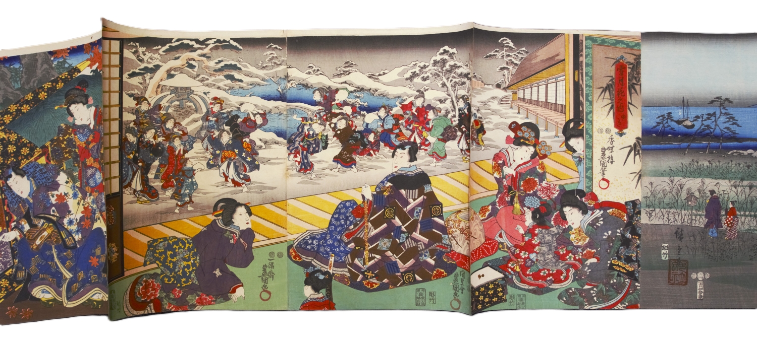 Album mit 37 Ukiyo-e Farbholzschnitten in 23 Trypticha bzw. Dypticha