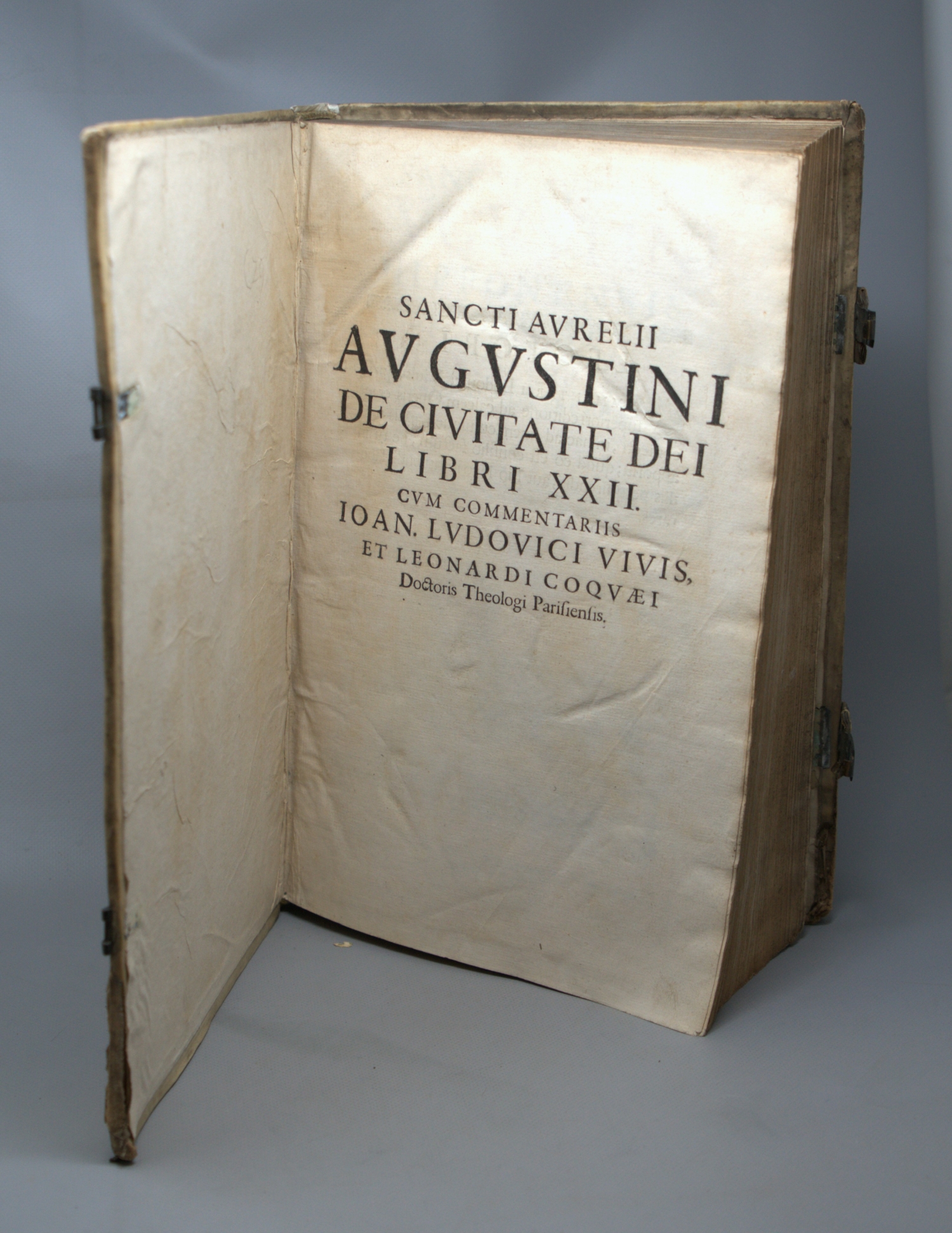 Graesse I, 253. Wetzer-Welte I, 1675. Vgl. Brunet I, 558. Nicht bei Goldsmith. – Spätere Gesamtausgabe der Werke des Kirchenvaters Augustinus. – Leicht braun- und stockfleckig sowie gebräunt. Titel des achten Teils vollständig hinterlegt und mit stärkeren Randläsuren (mit Fehlstellen, teils mit Textverlust). Dieser achte Teil stark feuchtrandig und mit Fehlstellen im Rand, die anderen Teile nur selten feuchtrandig. – Nachgebunden: Ferdinand Vellosillo. Advertentiae theologiae. 4 Bl., 326 (recte 296) Sp. Mit Titelholzschnitt. Ebenda 1664.