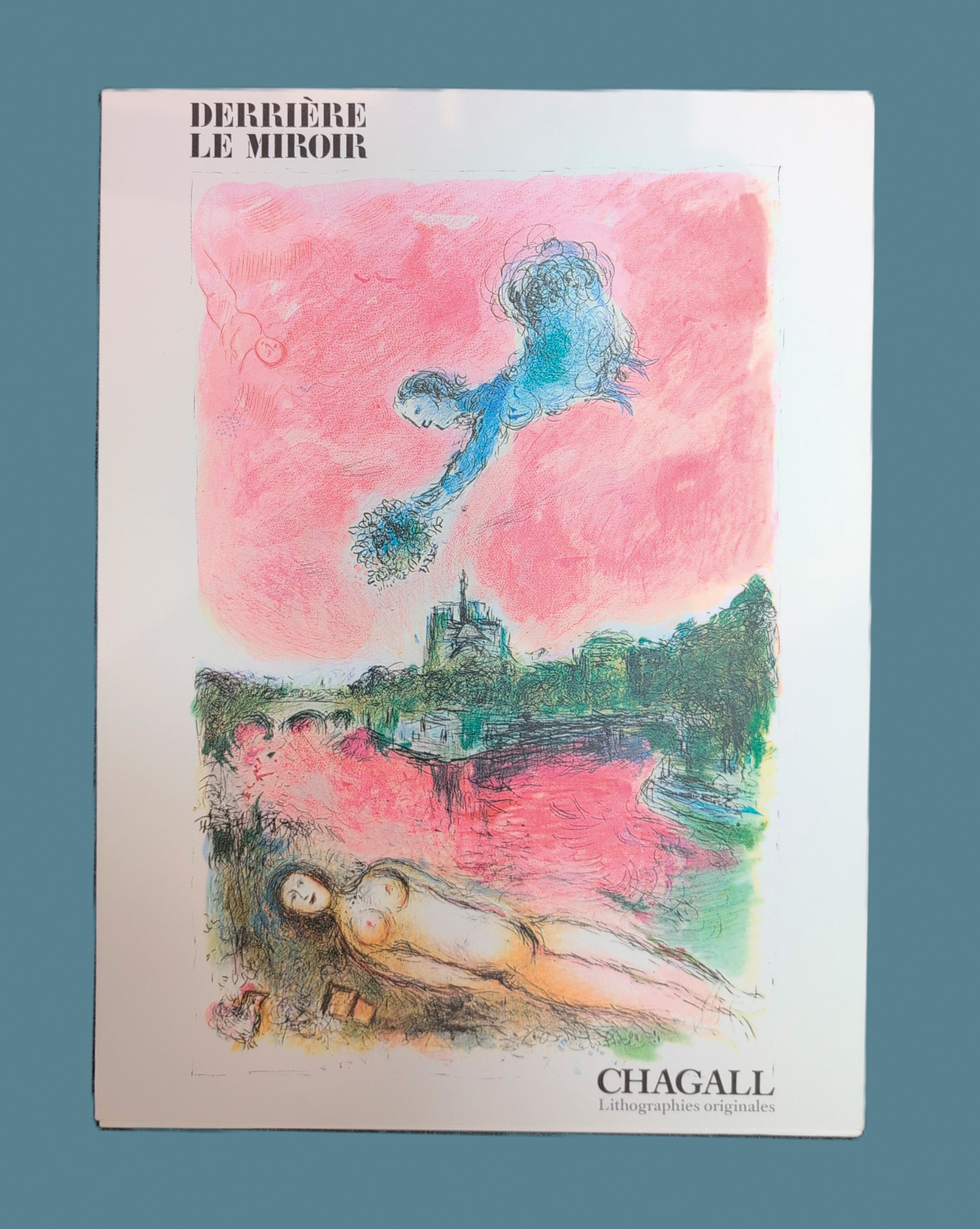 Chagall, Marc. - Derrière le Miroir. No. 246. Chagall. 23 S. Bl. Mit einer farbigen Original-Lithographie von Marc Chagall und mehreren farbigen Abbildungen. 38,5 x 28,5 cm. Lose Lagen in farbig illustrierter OUmschlag. Paris, Maeght, 1981.