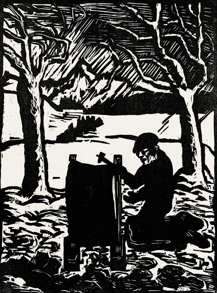 Arntz I 52. Riggs S. 345. Mason/Ludmann S. 140. – Eines von 50 Exemplaren (Gesamtauflage 600 Exemplare, die Nummer hier egschwärzt) der Vorzugsausgabe mit 6 Originalgraphiken: 3 Zwischentitelblätter ("Radierung", "Lithographie" und "Holzschnitt", jeweils mit einem anderem Signet "EH"), Lithographie "Dünental", Radierung "Stilleben" und Holzschnitt "Steineklopfer im Erzgebirge". Alle sechs Blätter auf Bütten, vom Künstler signiert und datiert "62" bzw. "63". Der erste Band behandelt die Holzschnitte, der zweite die Radierungen und Lithographien. Das Standardwerk verzeichnet 447 Holzschnitte, 196 Radierungen und 374 Lithographien, die alle abgebildet sind.