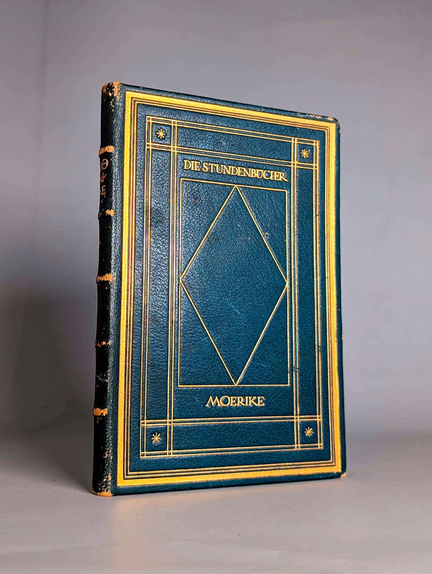Mörike, Eduard. Gedichte. 66 S., 3 Bl. 18,5 x 12 cm. Dunkelblaugrüner Originalmaroquinband (minimal bestoßen; Rücken etwas beschabt) mit reicher ornamentaler Vergoldung, vergold. Innenkantenfilete und Goldschnitt. München, Kurt Wolff, 1921.