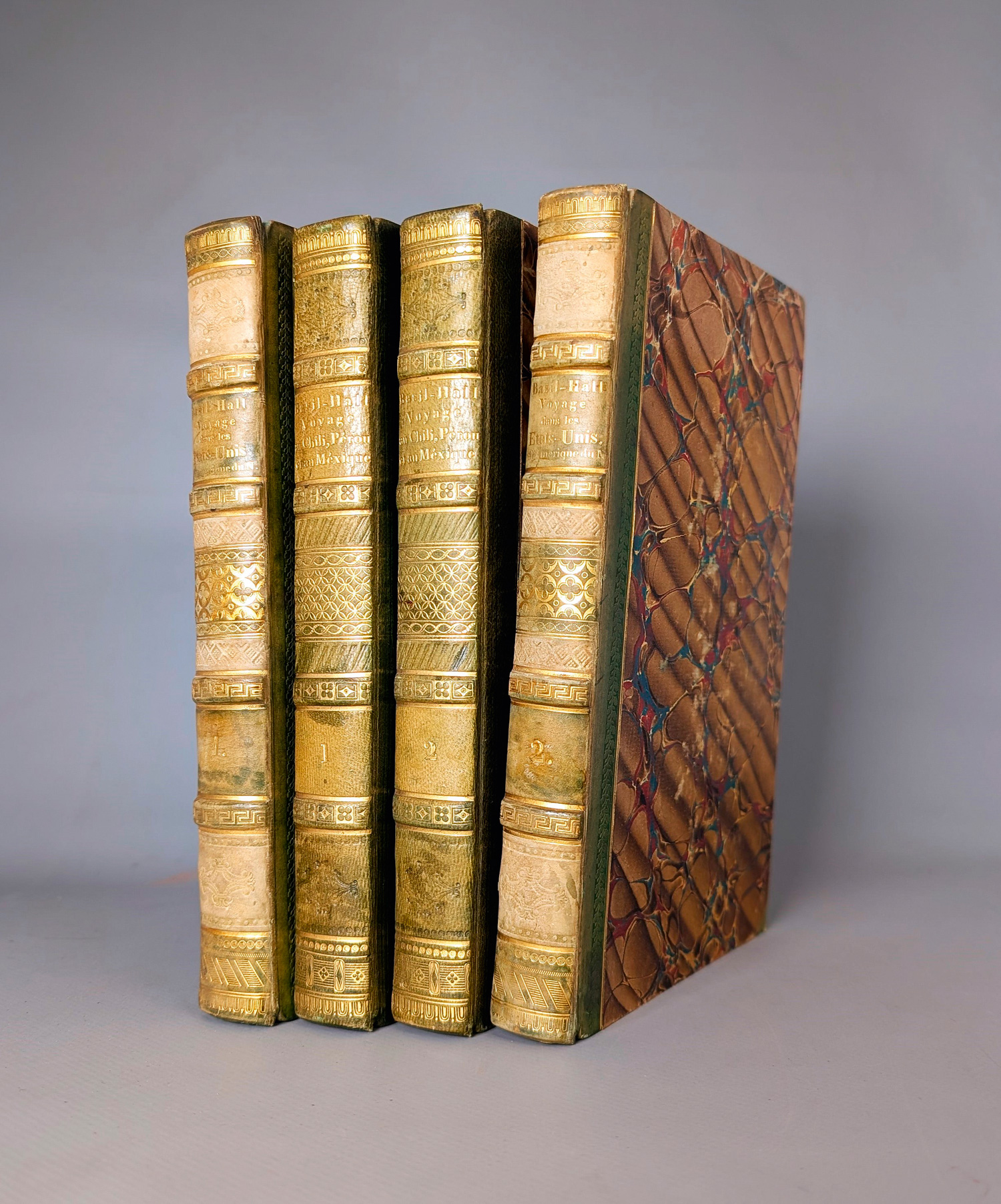 Hall, Basil. Voyage das les États-Unis de l'Amérique du Nord, et dans le Haut et le Bas-Canada. 2 Bände. 2 Bl., XII, 331 S.; 2 Bl., 347 S., 2 Bl. Mit gefalteter Kupferkarte. 20,5 x 12,5 cm. Halbleder d. Z. (Rücken verblichen). Mit goldgeprägtem RTitel. Paris, Bertrand, 1834.